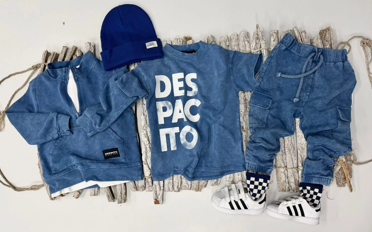 Despacito dziecięca bluza dresowa bez kaptura vintage niebieska