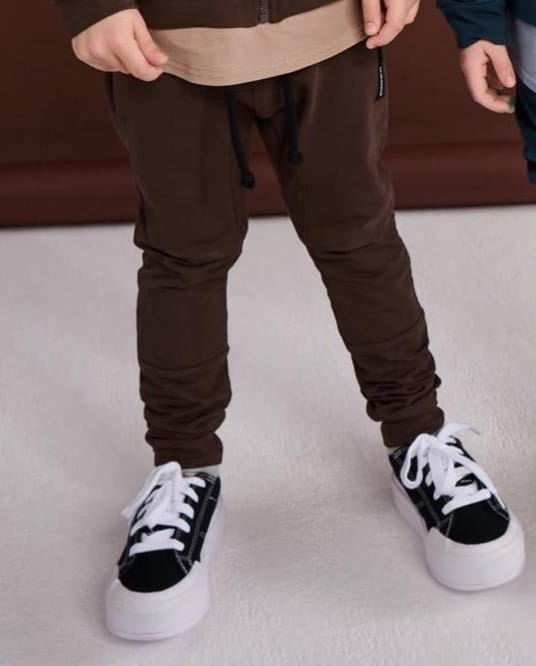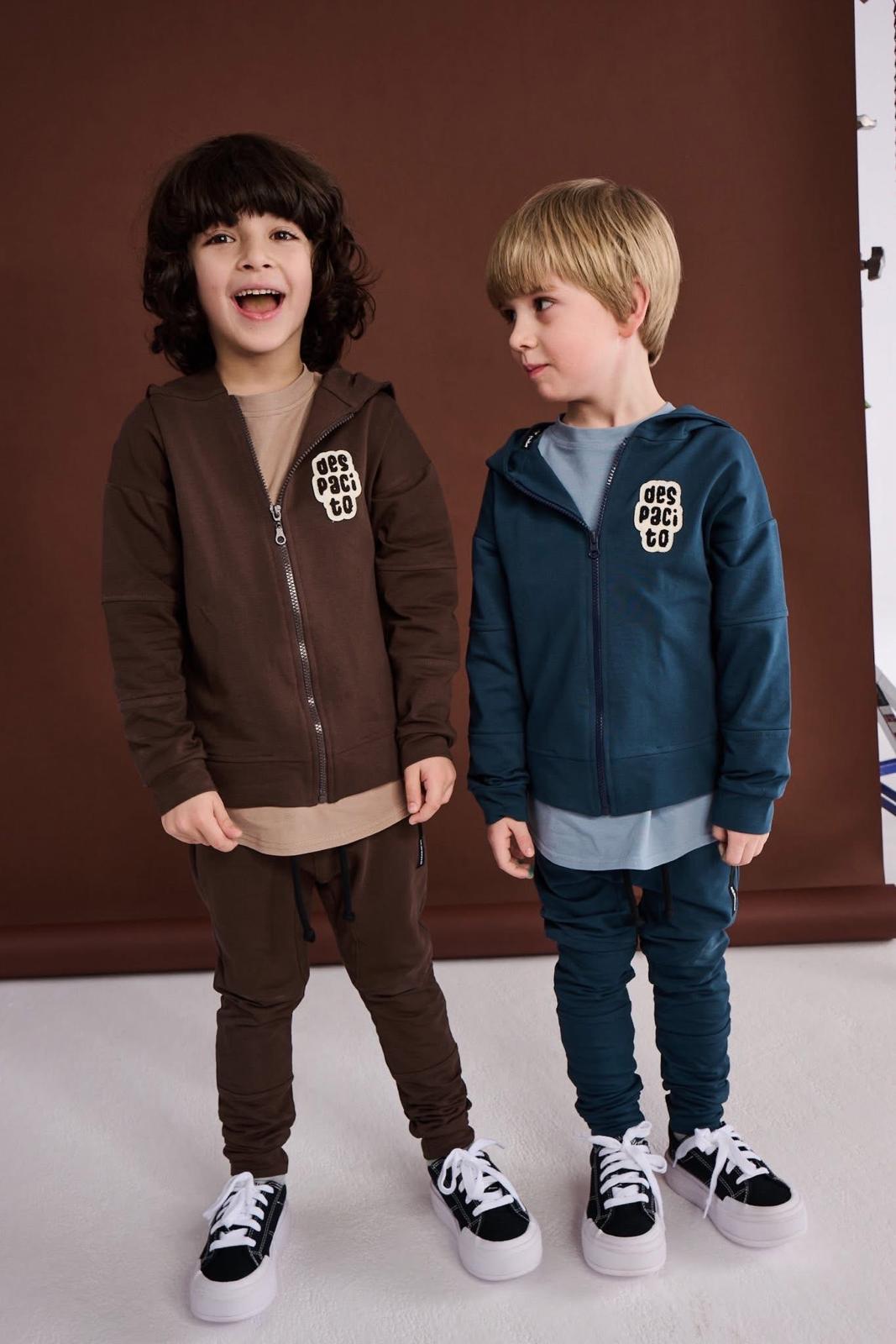 Despacito dziecięce spodnie bawełniane klasyczne z przeszyciami czekolada