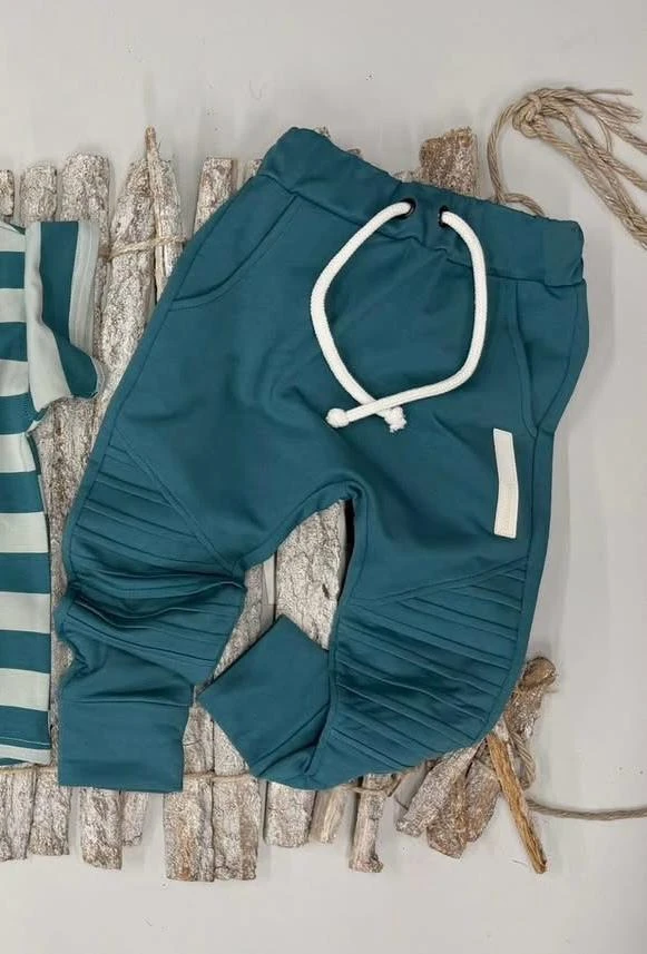 Despacito dziecięce spodnie bawełniane klasyczne z przeszyciamiturkus
