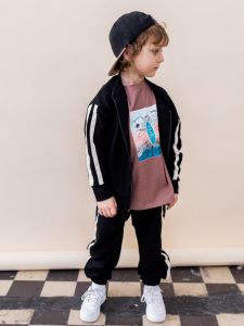 FUNKIDS dziecięca bluza dresowa bomberka czarna z lampasem