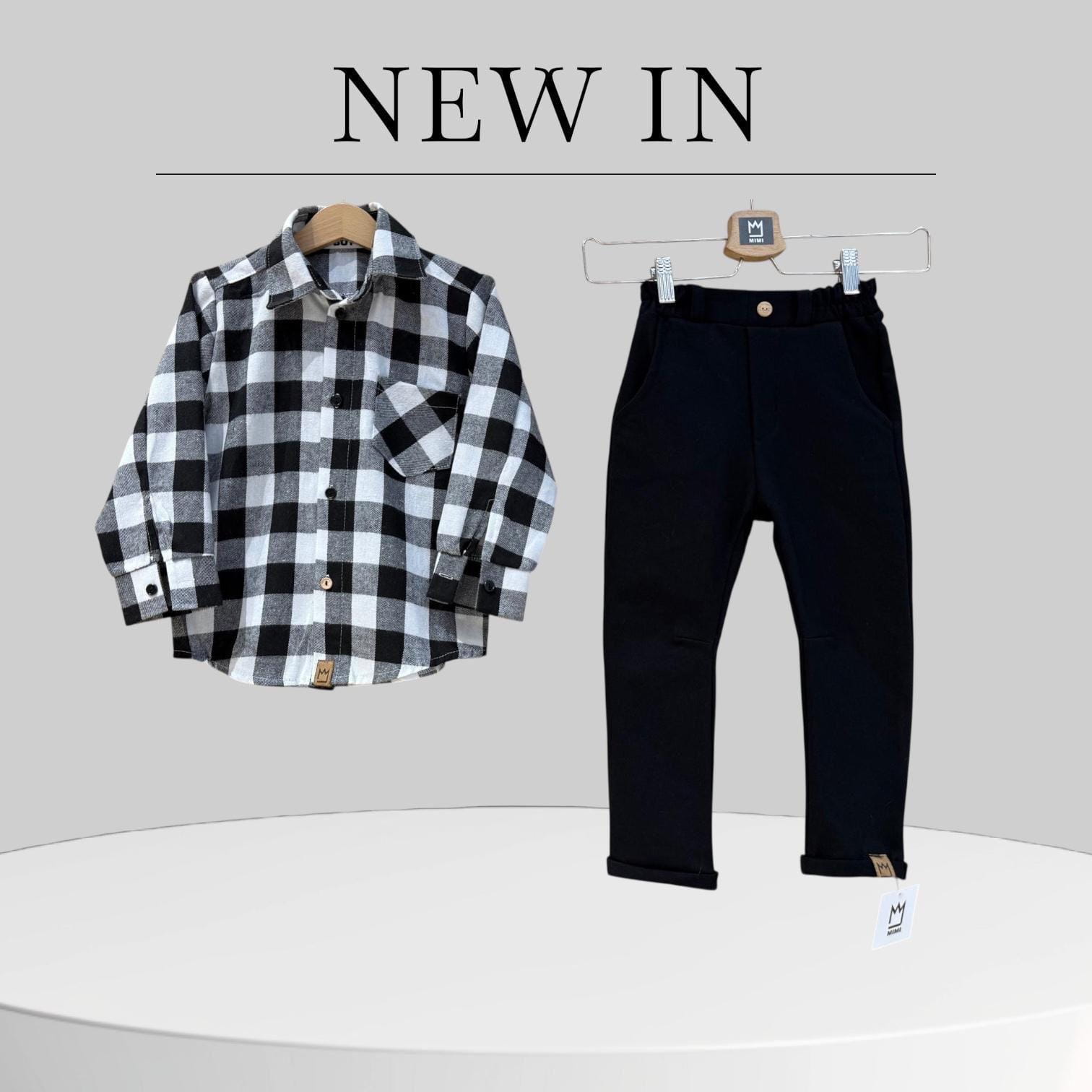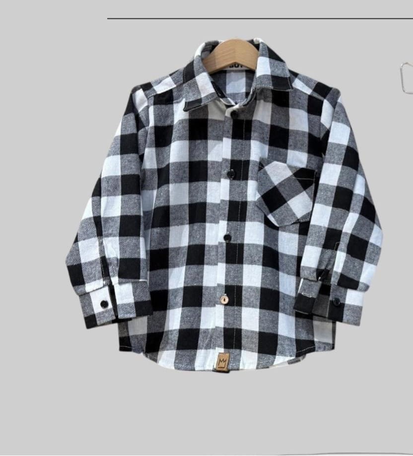 MIMI dziecięca wizytowa koszula flanelowa w kratę czarno białą