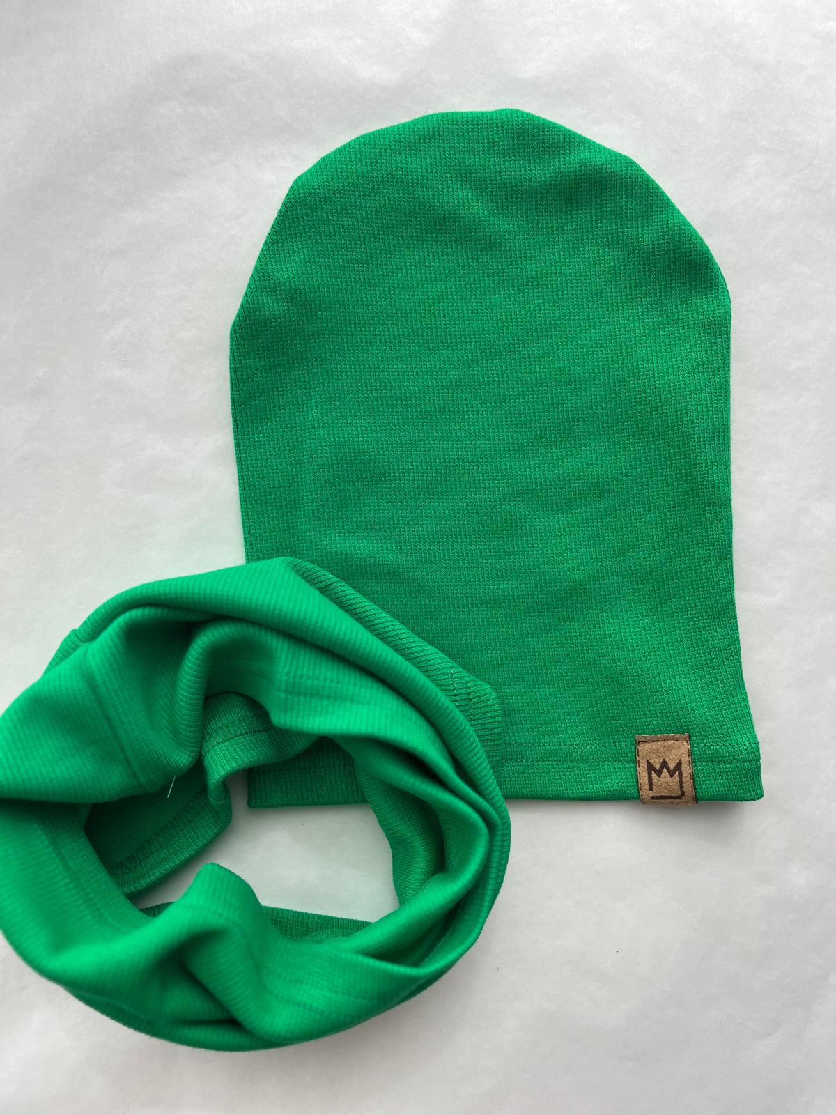 MIMI dziecięcy zestaw zielony czapka i komin