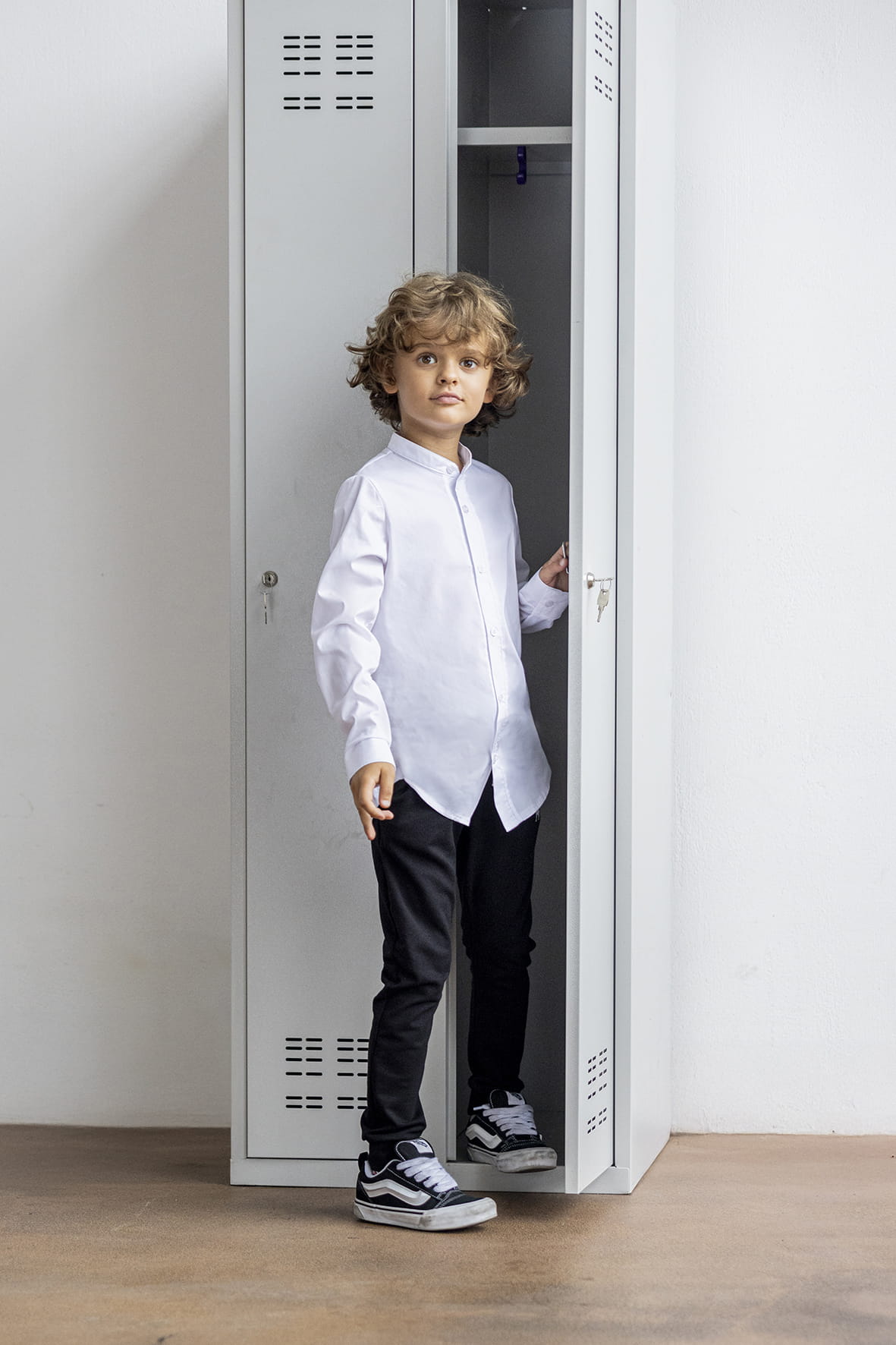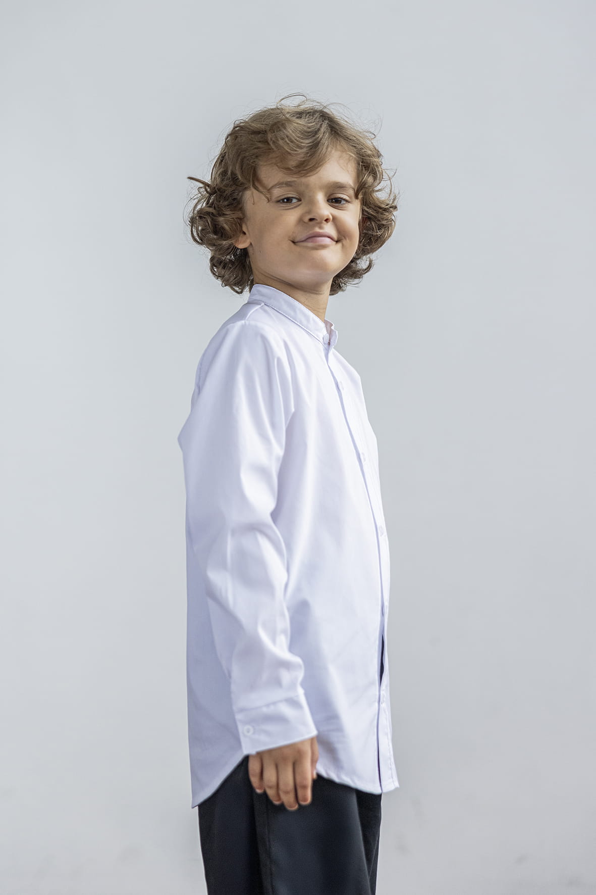 MashMnie koszula dziecięca dla chłopca ze stójką biała elegancka wizytowa galowa