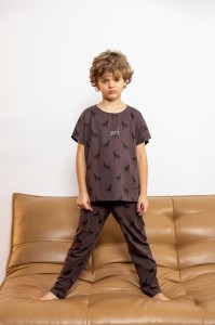 MashMnie piżama dziecięca bawełniana brązowa czekoladowa